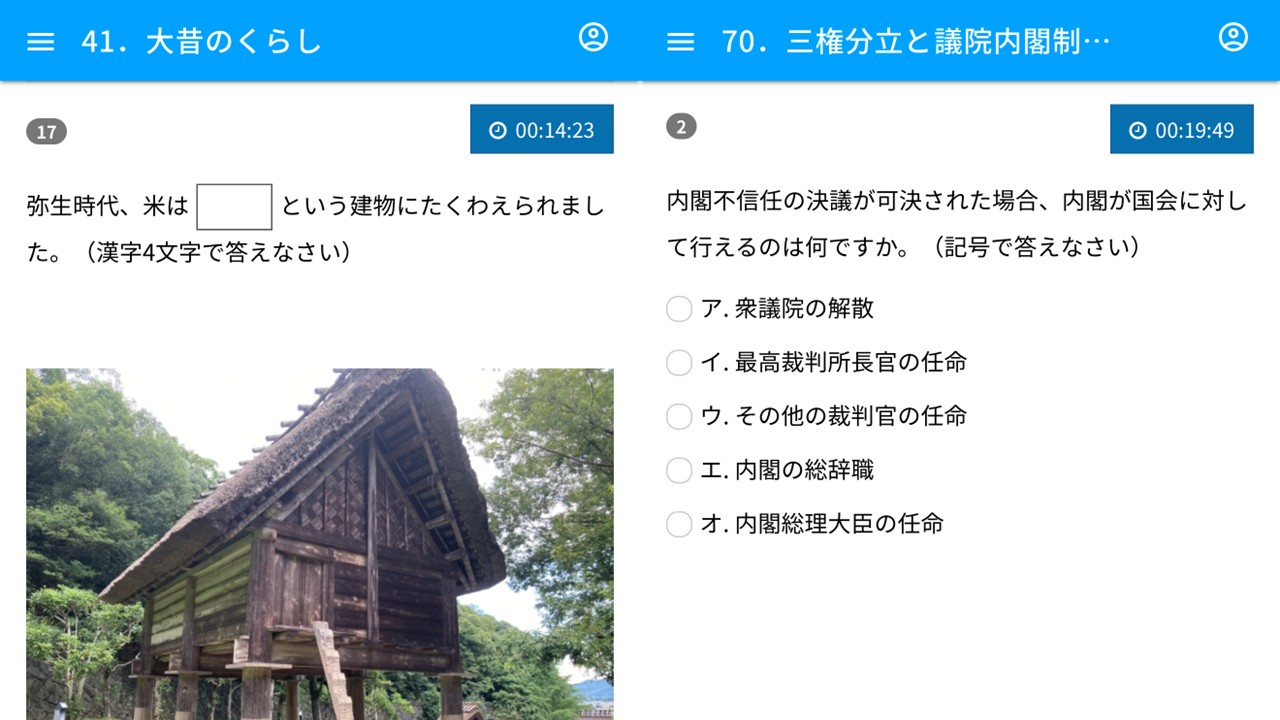 - 現時点では、テスト関連のコンテンツはその3つだけです。今後、高校受験理科、高校受験社会のテストを追加予定です(時期は未定)。